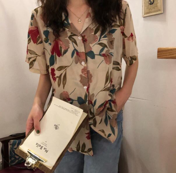 【送料無料】シャツ ブラウス 半袖 トップス 花柄 大人 カジュアル おしゃれ レトロ 30代 40代 ホワイト ブラック TP-181R