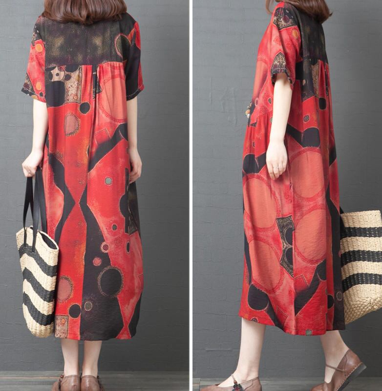 【送料無料】ワンピース 夏 ロング 大きいサイズ フレア ゆったり 長袖 無地 カジュアル シンプル 大人 30代 40代 ブルー レッド OP-247R