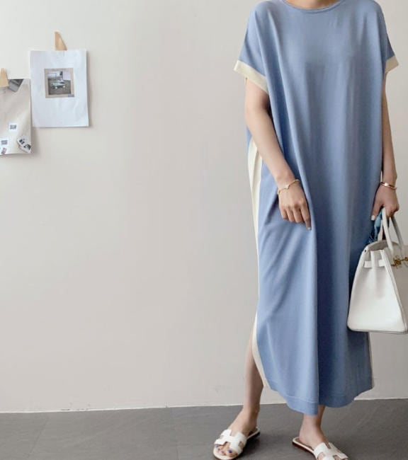 【送料無料】ワンピース 夏 ロング 大きいサイズ フレア ゆったり 長袖 無地 カジュアル シンプル 大人 30代 40代 ブルー ブラウン レッド ブラック OP-248R