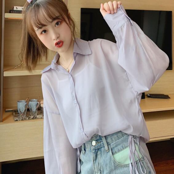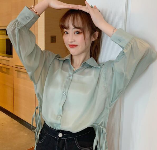 【送料無料】シャツ ブラウス トップス シアー 透け感 リボン 長袖 カジュアル 大人 シンプル おしゃれ 30代 40代 パープル ホワイト グリーン ホワイト TP-194R