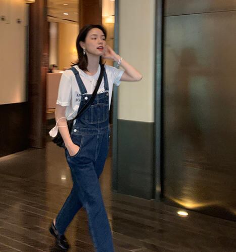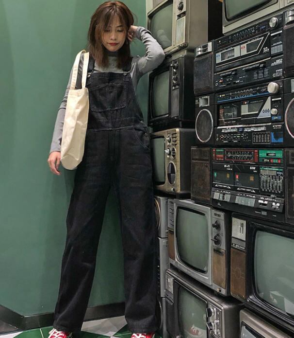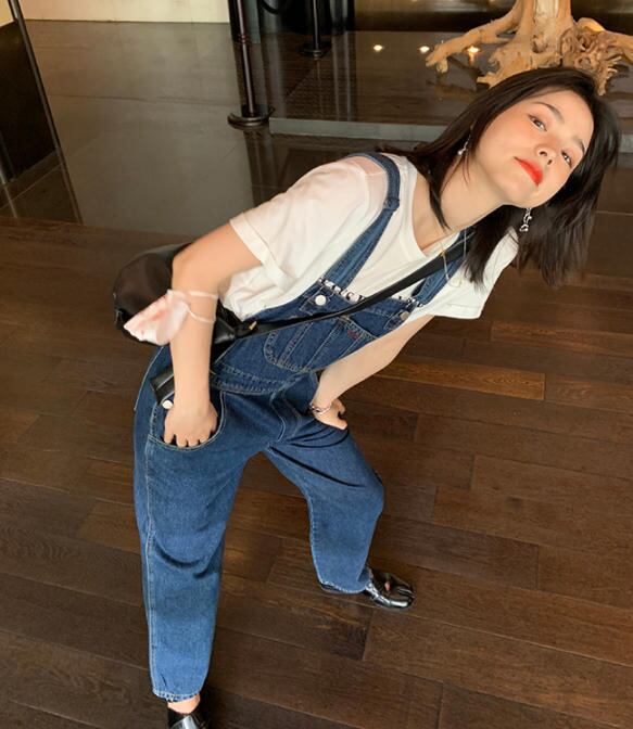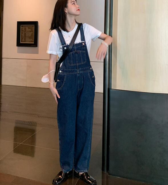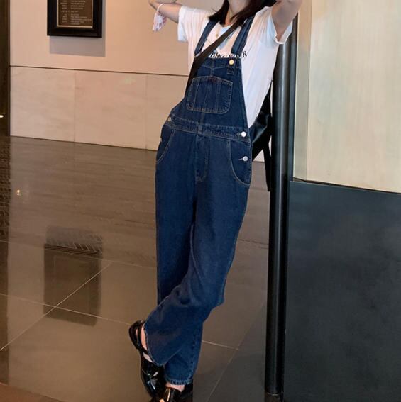 【送料無料】オーバーオール ワイドパンツ ゆったり 体型カバー 大人 無地 カジュアル シンプル ベーシック 30代 40代 ブルー ブラック OI-016R