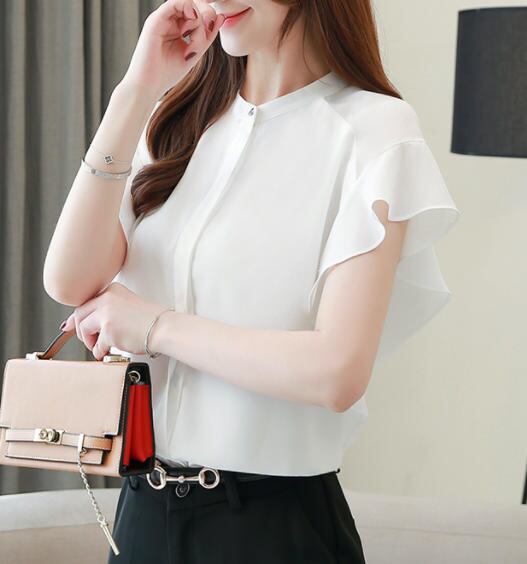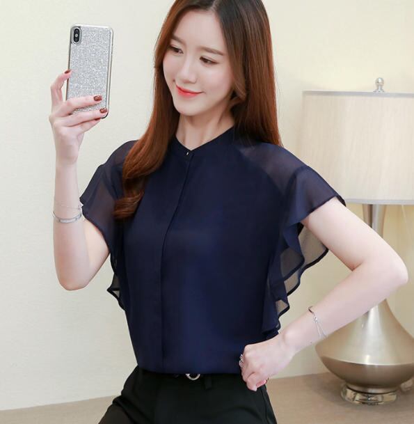 【送料無料】シャツ ブラウス トップス 大きいサイズ フリル ノーカラー 大人 上品 きれいめ 30代 40代 ネイビー ホワイト TP-196R