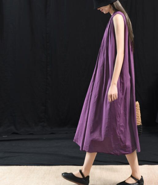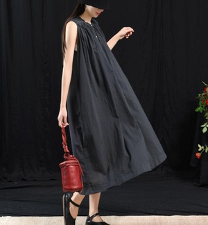 【送料無料】ワンピース 夏 ロング ノースリーブ フレア ゆったり 無地 シンプル 大人 カジュアル 30代 40代 パープル グリーン ネイビー ブラック レッド OP-253R