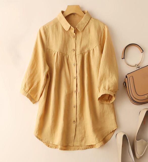 【送料無料】リネンシャツ ブラウス シャツ トップス リネン 大きいサイズ 無地 カジュアル シンプル 大人 きれいめ ベーシック 30代 40代 ピンク イエロー ブルー TP-209R