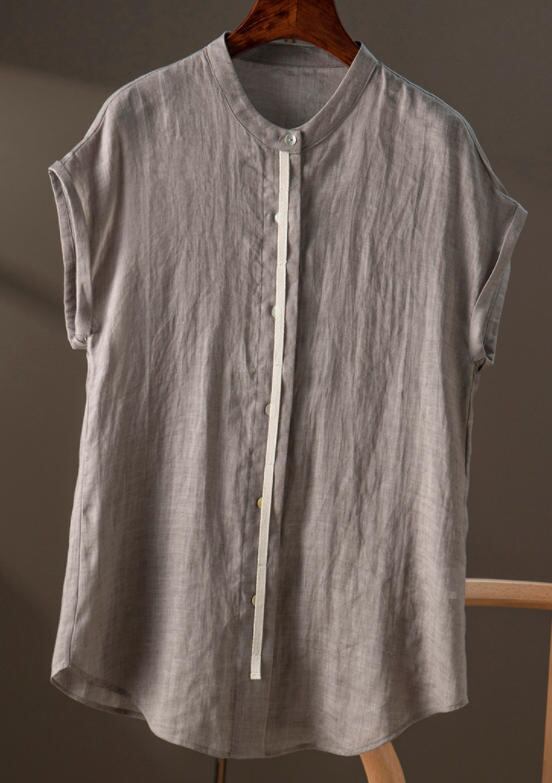 【送料無料】リネンシャツ ブラウス シャツ トップス リネン ノーカラー ゆったり 無地 カジュアル シンプル 大人 きれいめ ベーシック 30代 40代 ベージュ グレー グリーン TP-213R