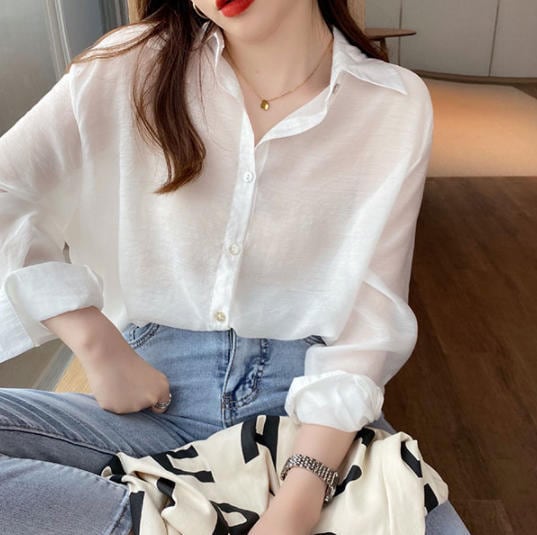 【送料無料】シアーシャツ トップス シースルー ゆったり カジュアル シンプル 大人 きれいめ 30代 40代 ホワイト ブルー ピンク ベージュ グリーン TP-220R