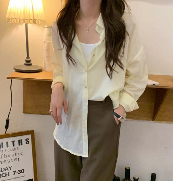 【送料無料】シアーシャツ トップス シースルー ゆったり カジュアル シンプル 大人 きれいめ 30代 40代 イエロー ホワイト TP-221R