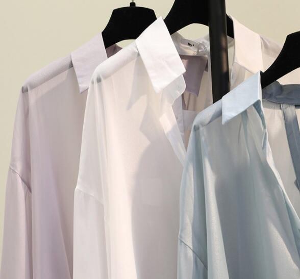 【送料無料】シアーシャツ トップス シースルー ゆったり カジュアル シンプル 大人 きれいめ 30代 40代 パープル ホワイト ブルー オレンジ TP-226R