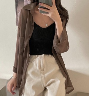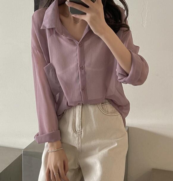 くすみカラーが大人可愛いシアーシャツです♪