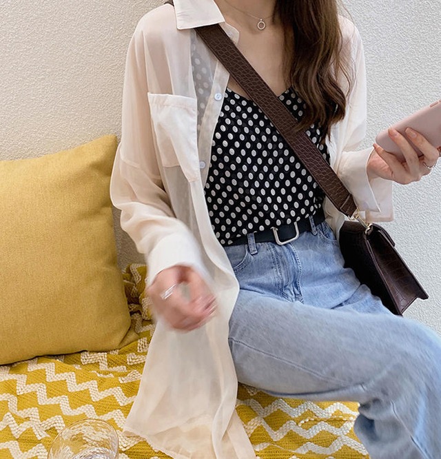 【送料無料】シアーシャツ トップス シースルー 大きいサイズ ゆったり カジュアル シンプル 大人 きれいめ 30代 40代 グリーン ピンク ホワイト TP-235R