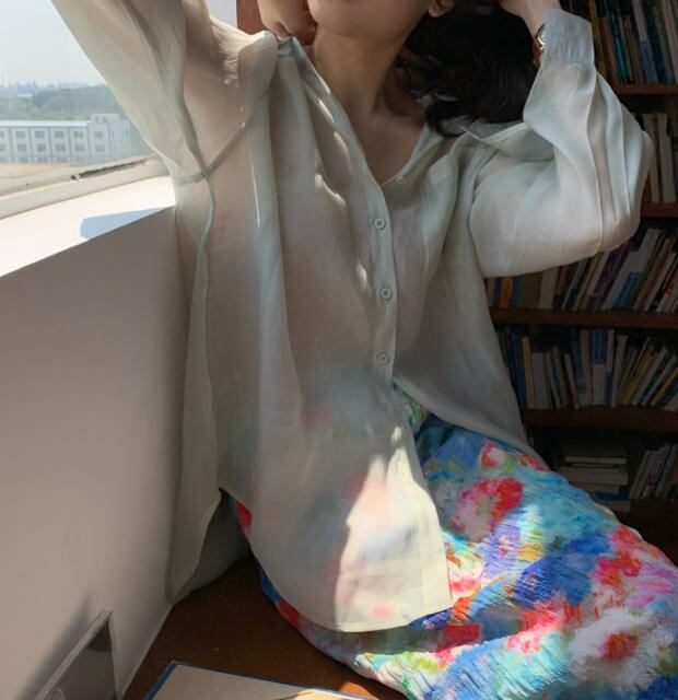 【送料無料】シアーシャツ トップス シースルー ゆったり カジュアル シンプル 大人 きれいめ 30代 40代 グリーン ホワイト パープル TP-236R