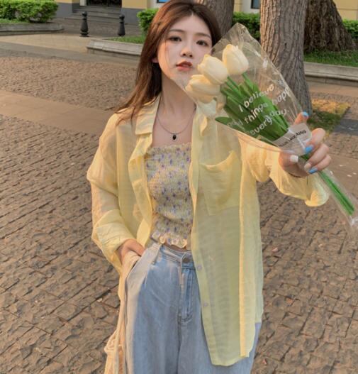 【送料無料】シアーシャツ トップス シースルー 透け感 ゆったり カジュアル シンプル 大人 きれいめ 30代 40代 ホワイト イエロー ブルー ピンク TP-244R