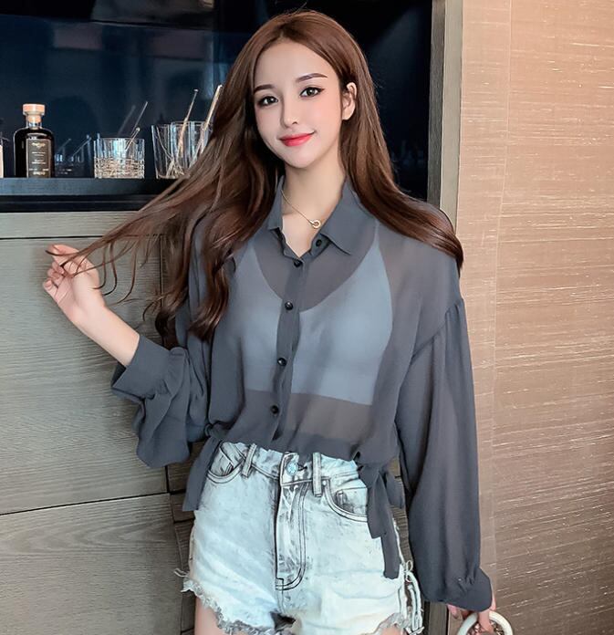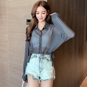 【送料無料】シアーシャツ トップス シースルー 透け感 ゆったり カジュアル シンプル 大人 きれいめ 30代 40代 ホワイト グレー TP-246R