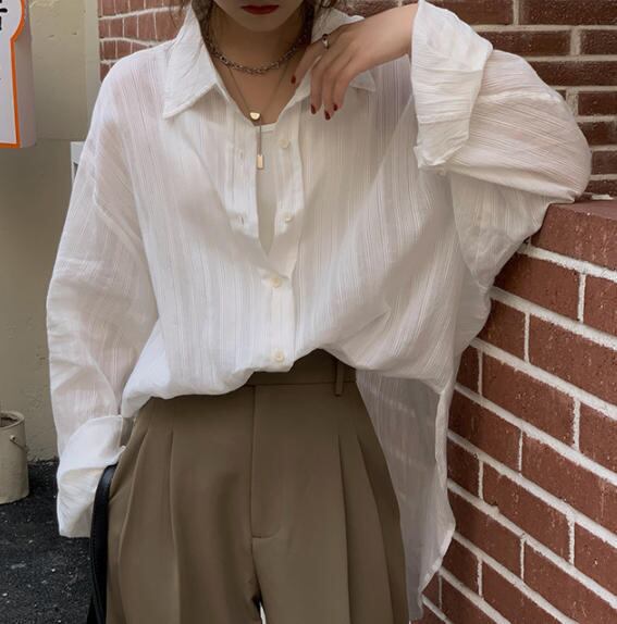 【送料無料】シアーシャツ トップス シースルー 透け感 ゆったり カジュアル シンプル 大人 きれいめ 30代 40代 ホワイト TP-259R