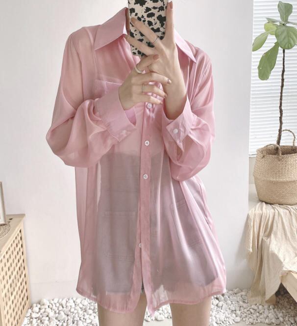【送料無料】シアーシャツ トップス シースルー 透け感 ゆったり カジュアル シンプル 大人 きれいめ 30代 40代 パープル ブルー ホワイト ピンク TP-262R