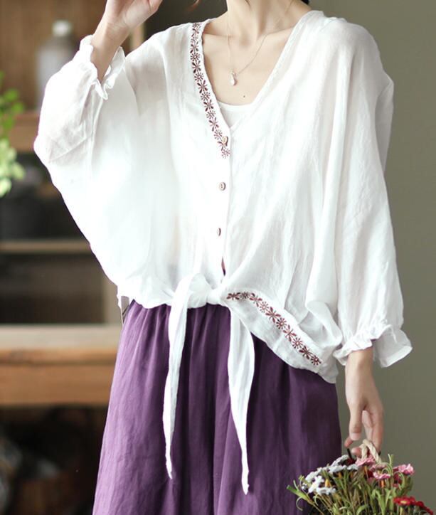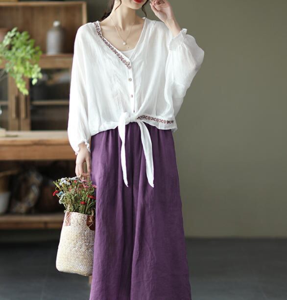 【送料無料】リネンシャツ ブラウス シャツ トップス リネン Vネック ゆったり 無地 カジュアル シンプル 大人 きれいめ ベーシック 30代 40代 ホワイト ブラック ブラウン TP-270R