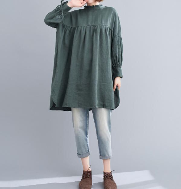 深みのあるグリーンが大人っぽいリネンシャツです♪
