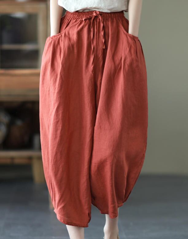 【送料無料】ロングパンツ リネン きれいめ 大きいサイズ ハイウエスト 無地 体型カバー 無地 上品 シンプル ベーシック カジュアル 大人 30代 40代 イエロー パープル ブラウン ブラック ブルー レッド ホワイト PT-112R