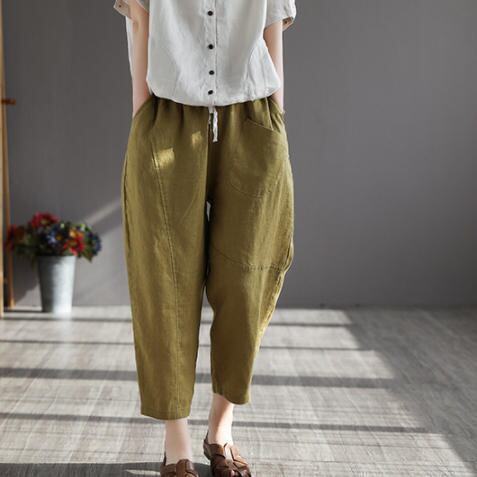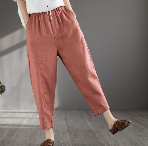 【送料無料】ロングパンツ リネン きれいめ 大きいサイズ ハイウエスト 無地 体型カバー 無地 上品 シンプル ベーシック カジュアル 大人 30代 40代 イエロー ブラウン ホワイト ベージュ ブラック カーキ グリーン レッド PT-119R