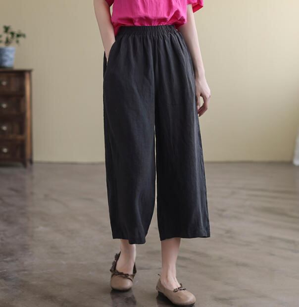 【送料無料】ロングパンツ リネン きれいめ 大きいサイズ ハイウエスト 無地 体型カバー 無地 上品 シンプル ベーシック カジュアル 大人 30代 40代 ベージュ カーキ ブラック PT-121R
