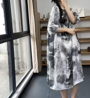 【送料無料】ワンピース 夏 きれいめ 大きいサイズ ゆったり 体型カバー カジュアル シック おしゃれ レトロ 大人 上品 30代 40代 ブラック ホワイト OP-255R