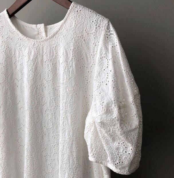 【送料無料】ワンピース きれいめ ひざ丈 パンチングレース ゆったり 半袖 無地 フレア カジュアル シンプル 大人 可愛い ベーシック 30代 40代 ホワイト OP-260R