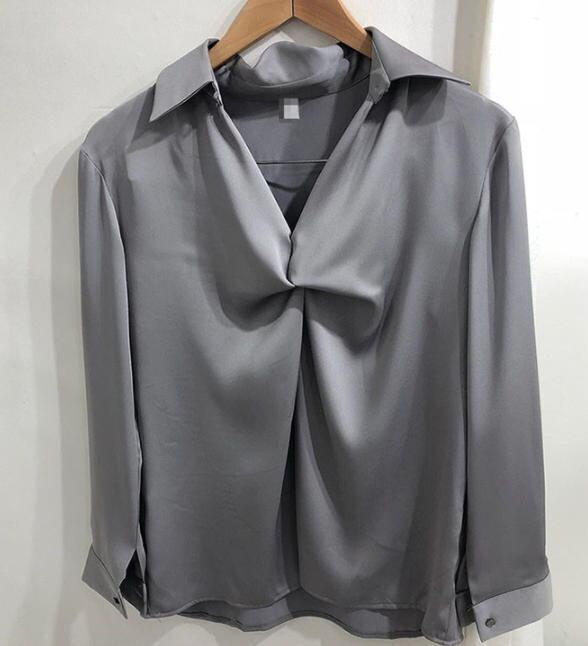 【送料無料】ブラウス トップス 光沢 ツイスト ゆったり きれいめ 上品 大人 無地 シンプル 30代 40代 グレー ホワイト ピンク TP-308R