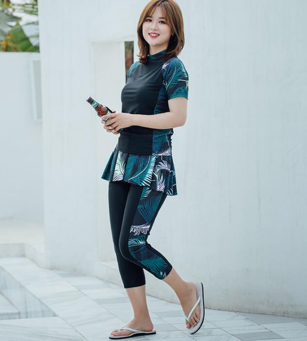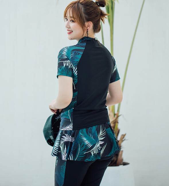 【送料無料】フィットネス水着 レディース 大きいサイズ ラッシュガード ボタニカル 大人 シンプル 体型カバー 着痩せ 30代 40代 ブラック SW-025IU