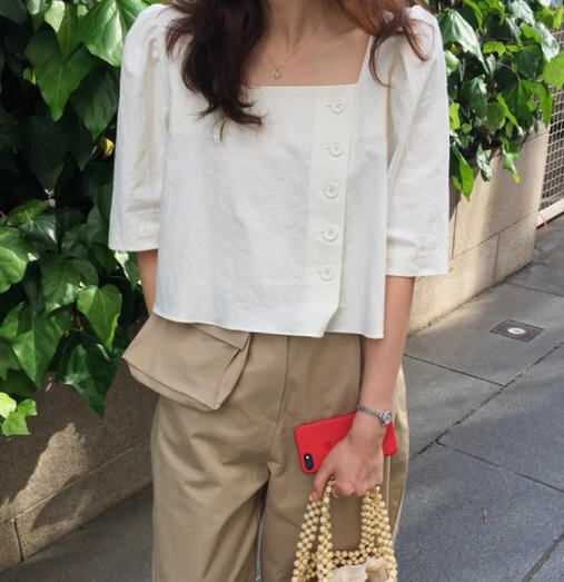 【送料無料】ブラウス トップス きれいめ 半袖 スクエアネック おしゃれ 上品 大人 無地 可愛い 30代 40代 ホワイト ブラック TP-325R