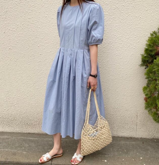 【送料無料】ワンピース きれいめ ロング プリーツ 半袖 ハイウエスト フレア 半袖 無地 カジュアル シンプル 大人 可愛い ベーシック 30代 40代 ブルー ブラック ホワイト OP-287R