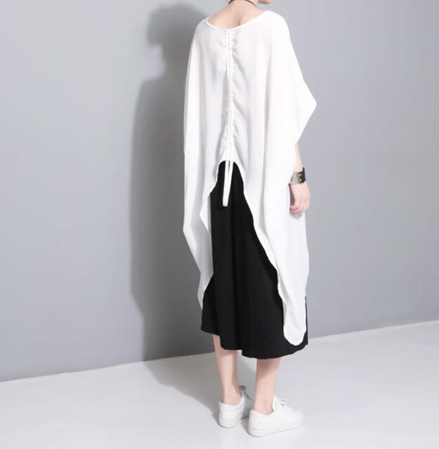 【送料無料】Tシャツ チュニック トップス 半袖 アシンメトリー ゆったり 体型カバー カジュアル 大人 可愛い モード カジュアル おしゃれ 30代 40代 ホワイト ブラック TP-337R
