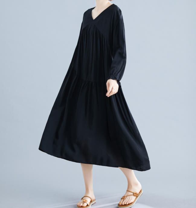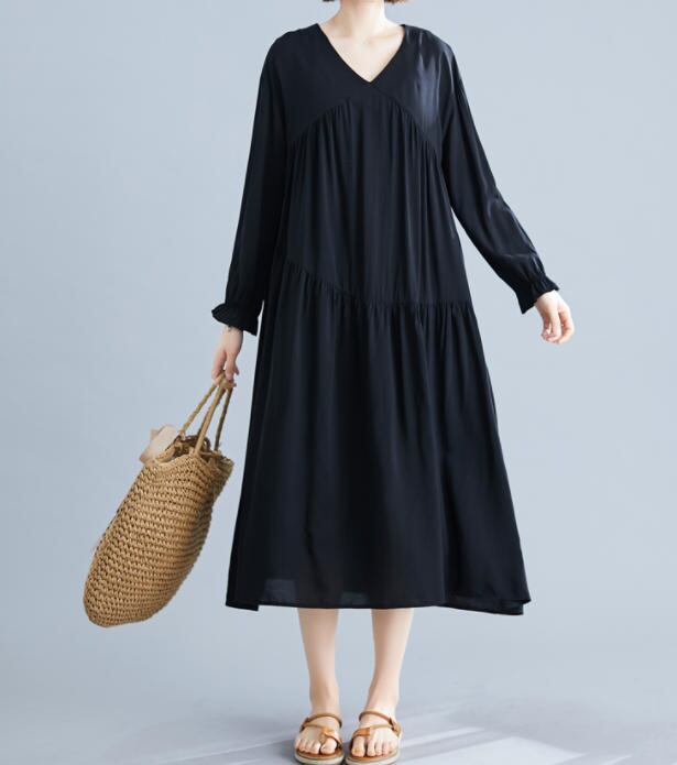 【送料無料】ワンピース きれいめ 半袖 ロング 大きいサイズ ルーズ ゆったり 半袖 無地 フレア カジュアル シンプル 大人 可愛い ベーシック 30代 40代 ブラック OP-311R