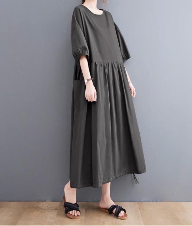 【送料無料】リネンワンピース きれいめ 半袖 ロング 大きいサイズ ルーズ ゆったり 半袖 無地 フレア カジュアル シンプル 大人 可愛い ベーシック 30代 40代 グレー カーキ ブラック OP-317R