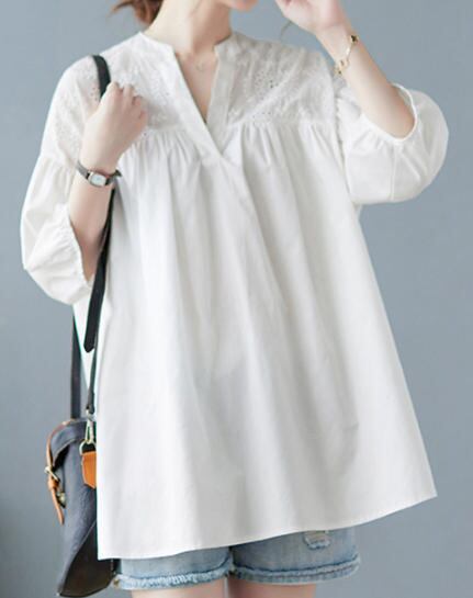 【送料無料】ブラウス シャツ チュニック トップス 七分袖 パンチングレース 透け感 きれいめ おしゃれ 上品 大人 無地 可愛い 30代 40代 ホワイト ブラック TP-365R