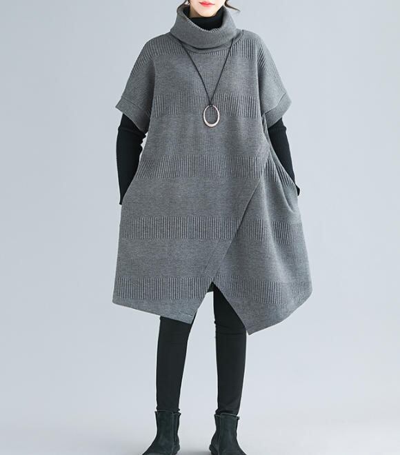 【送料無料】ワンピース 秋 きれいめ アシンメトリー ハイネック 膝丈 カジュアル シンプル ベーシック 大人 無地 30代 40代 グレー ブラック OP-324R
