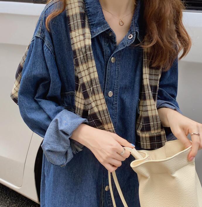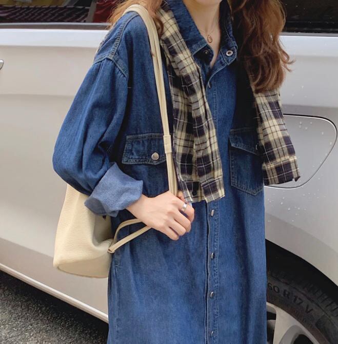【送料無料】デニムワンピース 秋 きれいめ ロング 長袖 カジュアル シンプル ベーシック 大人 無地 30代 40代 ブルー OP-328R
