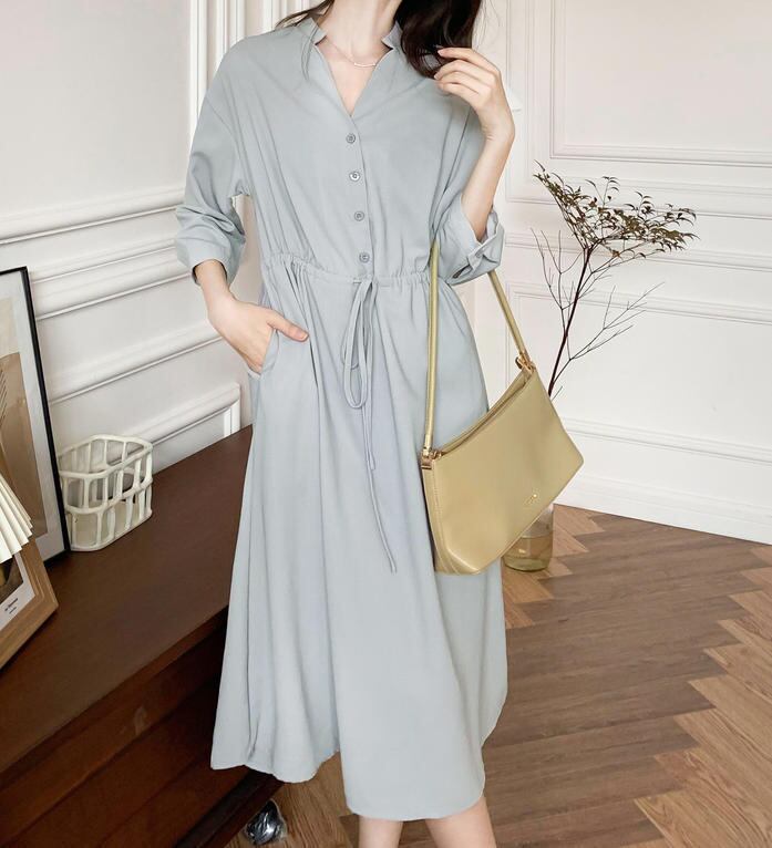 ミントグリーンが女性らしいロングワンピースです♪