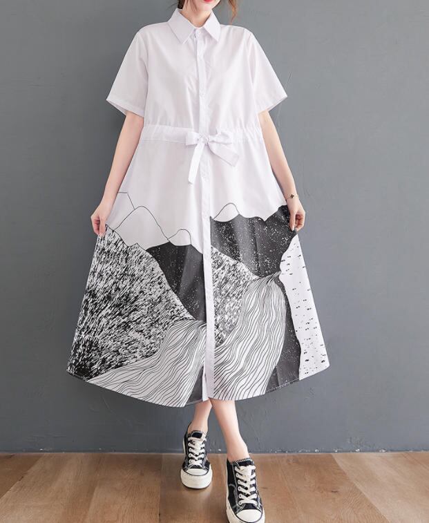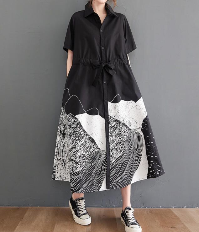 【送料無料】ワンピース 秋 きれいめ ロング 半袖 柄 カジュアル シンプル ベーシック 大人 無地 30代 40代 ホワイト ブラック OP-335R