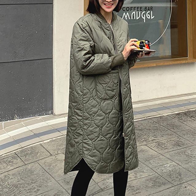 【送料無料】キルティングコート 大きいサイズ ロング アウター ゆったり ノーカラー きれいめ 上品 大人 30代 40代 50代 通勤 カーキ ブラック OU-048R