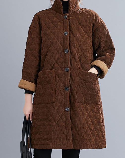 【送料無料】キルティングコート ロング コーデュロイ アウター ゆったり きれいめ 上品 大人 30代 40代 50代 通勤 ピンク カーキ ブラウン OU-065R