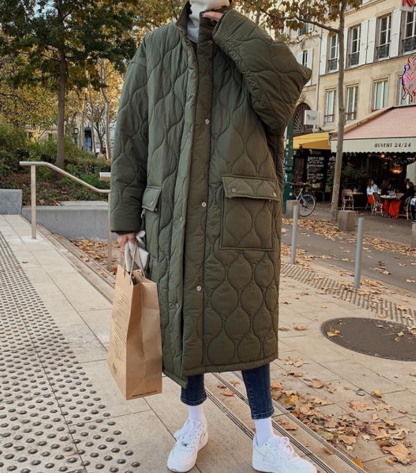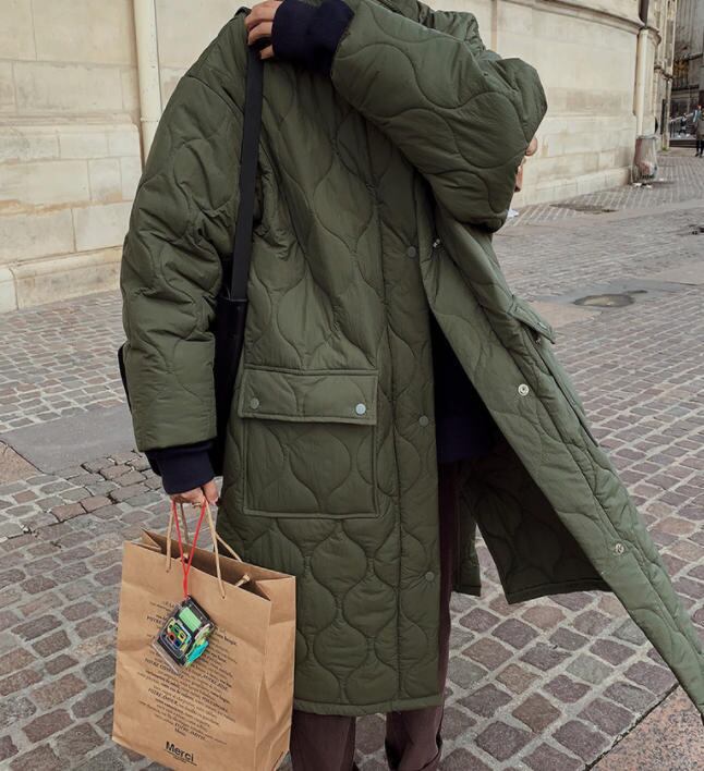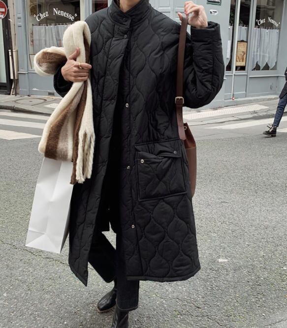 【送料無料】キルティングコート ロング アウター ゆったり ノーカラー きれいめ 上品 大人 30代 40代 50代 通勤 カーキ ブラック OU-066R