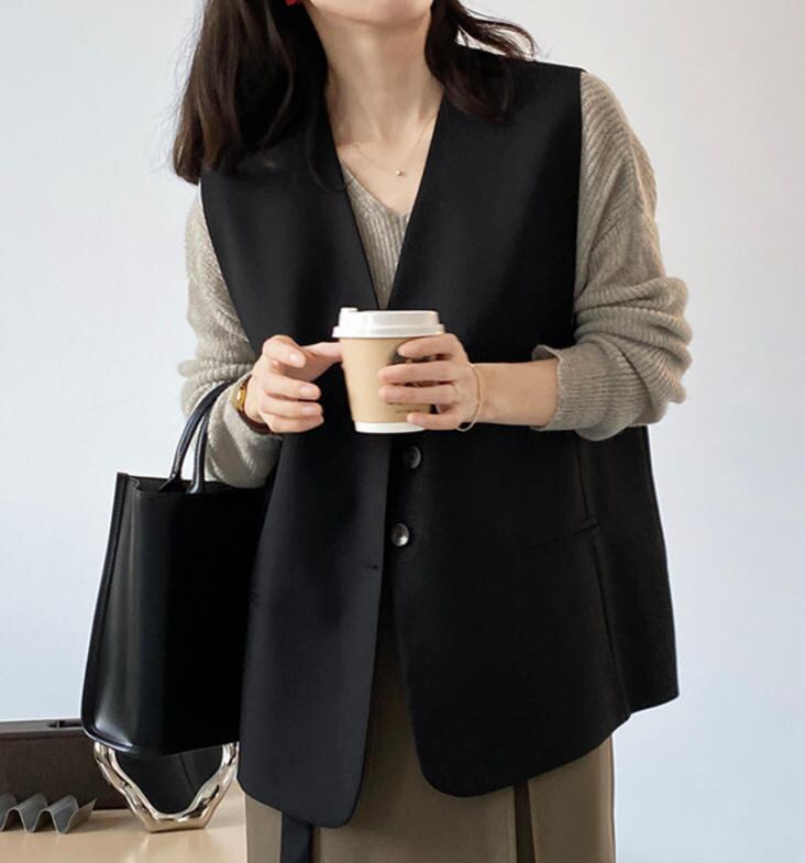 【送料無料】ジレ コート ロングジレ ロングベスト レディース トレンチベスト ノーカラー アウター 大きいサイズ ロング丈 秋冬 カジュアル エレガント シンプル 通勤 30代 40代 ブラック ベージュ OU-072R