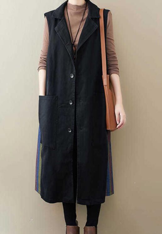 【送料無料】ジレ コート ロングジレ ロングベスト レディース トレンチベスト ノーカラー アウター 大きいサイズ ロング丈 秋冬 カジュアル エレガント シンプル 通勤 30代 40代 ブラック OU-083R