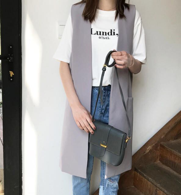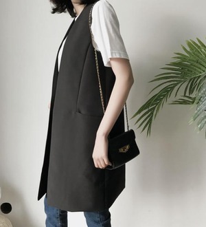無地で合わせやすいジレコートです♪