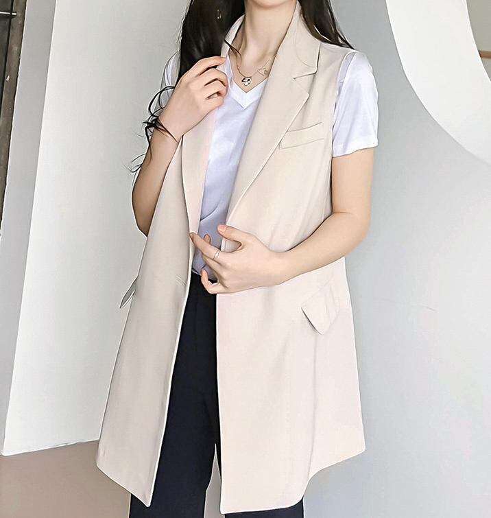 【送料無料】ジレ コート ロングジレ ロングベスト レディース トレンチベスト ノーカラー アウター 大きいサイズ ロング丈 秋冬 カジュアル エレガント シンプル 通勤 30代 40代 ブラック ベージュ OU-091R