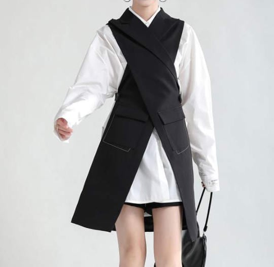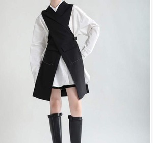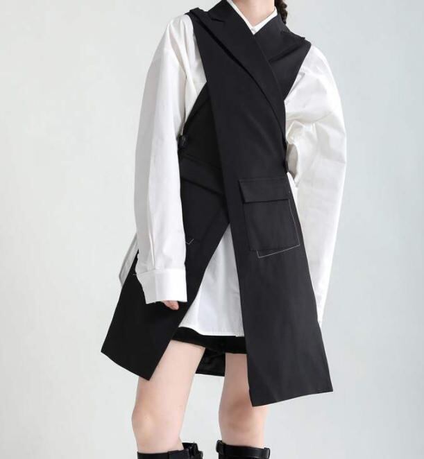 【送料無料】ジレ コート ロングジレ ロングベスト レディース トレンチベスト モード ノーカラー アウター 大きいサイズ ロング丈 秋冬 カジュアル エレガント シンプル 通勤 30代 40代 ブラック OU-099R