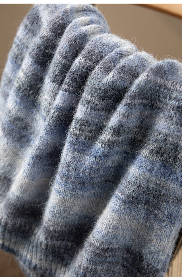 【送料無料】 ワンサイズ ヘッジ セーター 長袖 ラウンドネック ストライプ ウール アルパカ おしゃれ 大人かわいい きれいめ カジュアル ベーシック フェミニン お出かけ デート 普段使い デイリー 秋 冬 TP-001RT