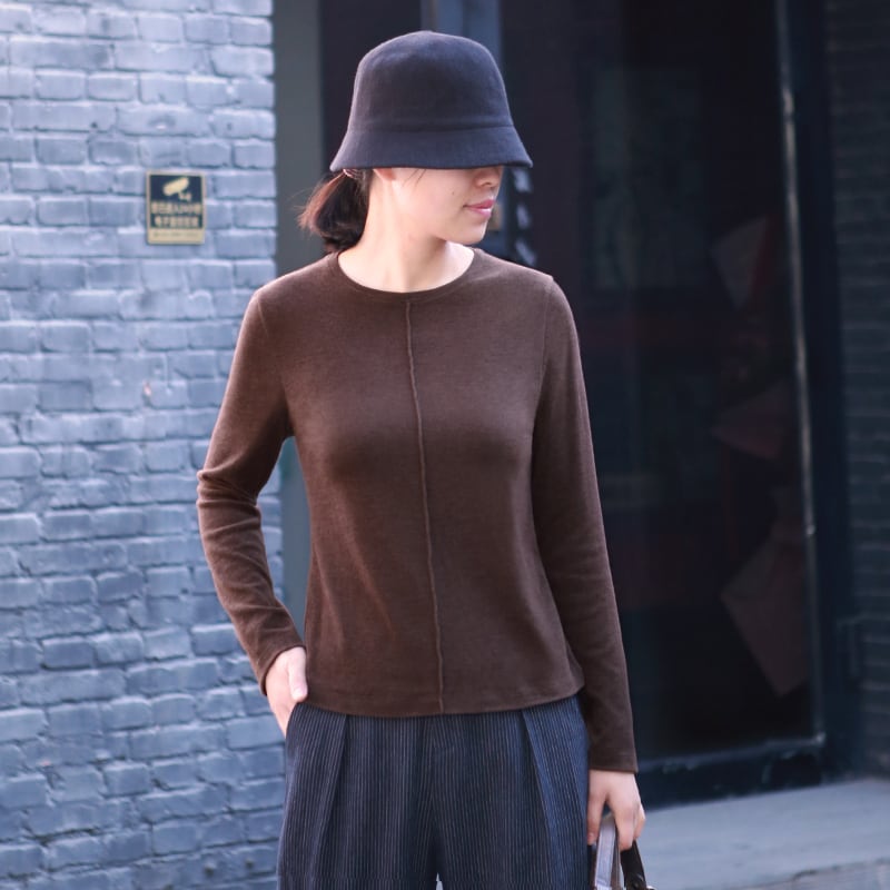 ロングTシャツ ラウンドネック 長袖 無地 センターライン シンプル 大人カジュアル 春秋 お出かけ レジャー 通勤 TP-004YK