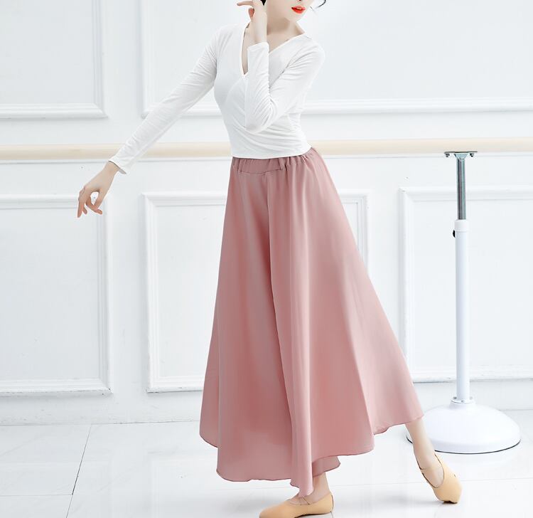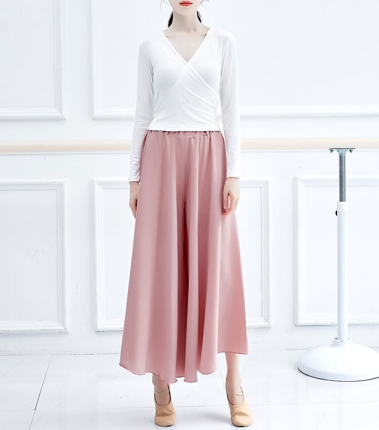 キュロット ドレープ ワイドパンツ ガウチョ ロング丈 ルーズ 無地 ウエストゴム ゆったり リラックス ホワイト ピンク ブルー ブラック クラシック ダンス バレエ レッスン BM-001YK