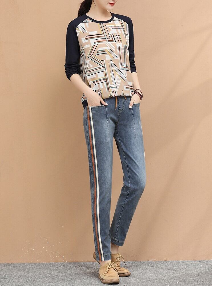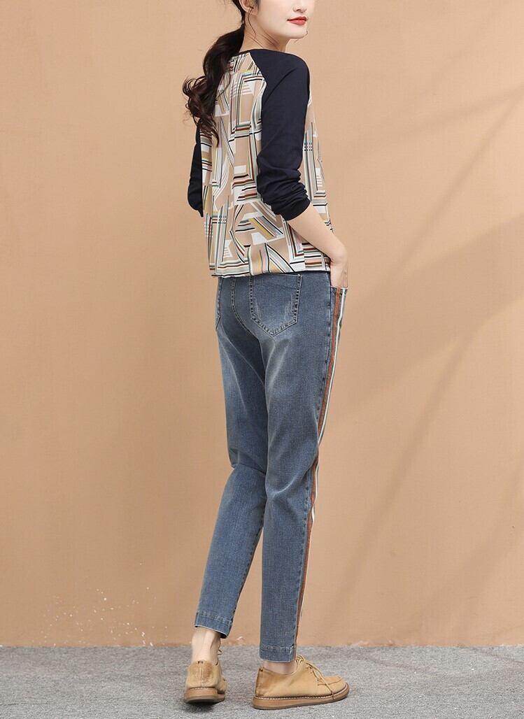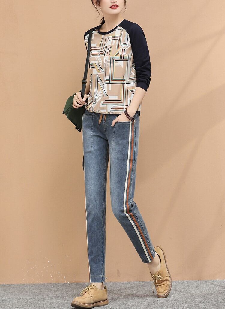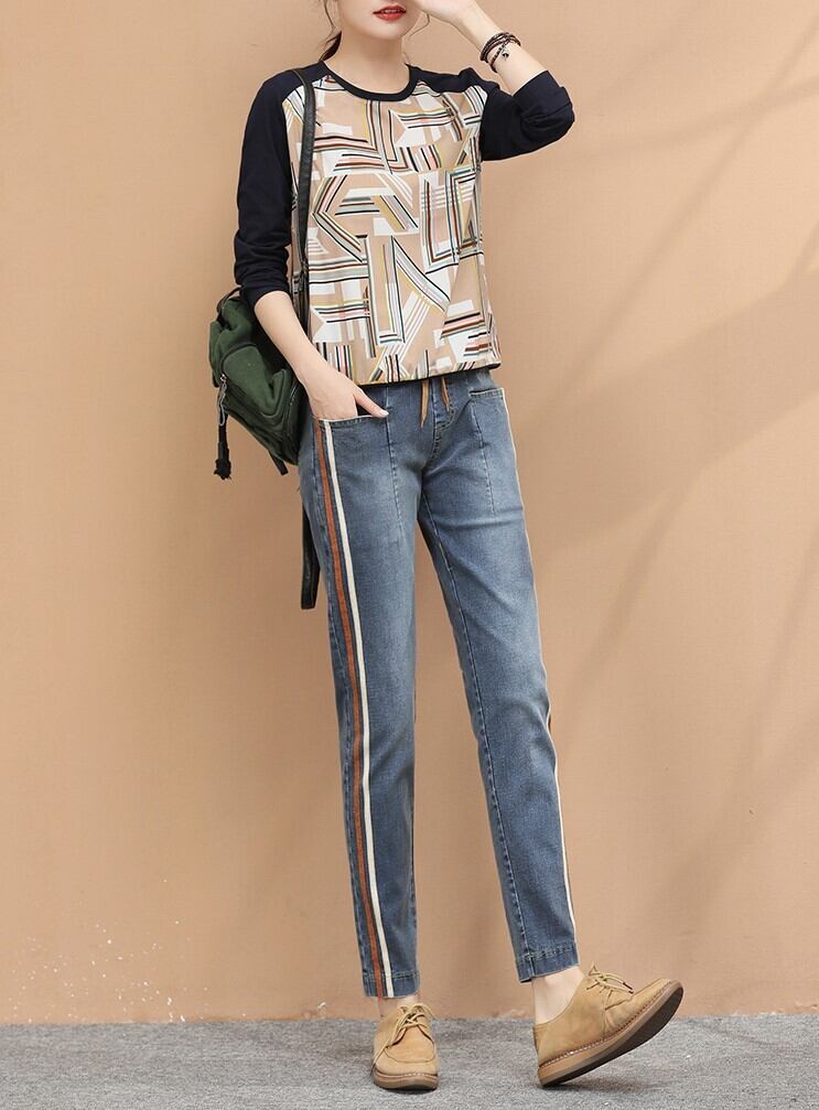 ボトムス パンツ レトロ 秋 春 おしゃれ ジーンズ デニム ストライプ ストレート ルーズ カジュアル コットン ナチュラルウエスト ハーレムパンツ 通勤 お出かけ デート BM-004RT